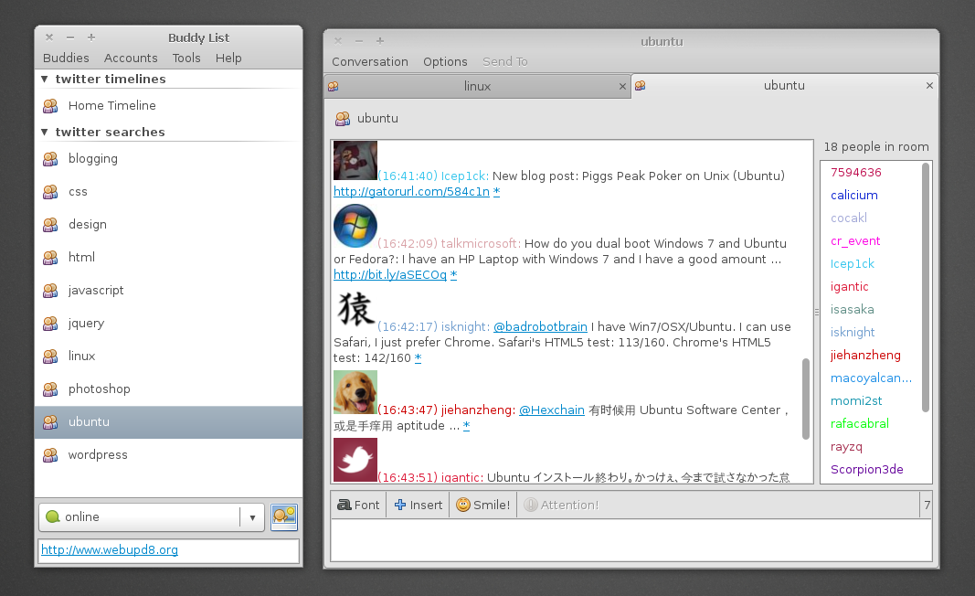 Prpltwtr works with Empathy too but I've only tested it with Pidgin and the installation instructions below will be for Pidgin only. For Empathy, see THESE installation instructions.